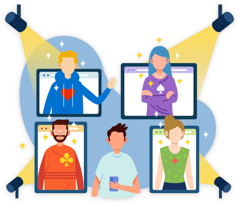 我们会时常邀请一些德州扑克红人和人气主播来进行视频游戏,如果恰好有你喜欢的明星千万不要错过一起竞技互动的机会。